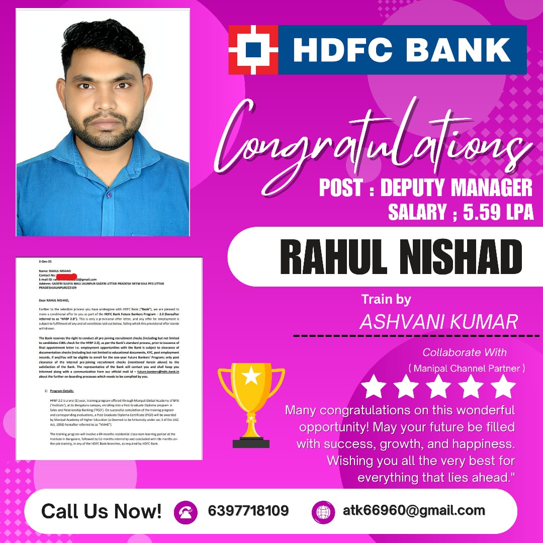 Top companies like HDFC bank, Axis bank, and Blinkit will hire students right after their training.